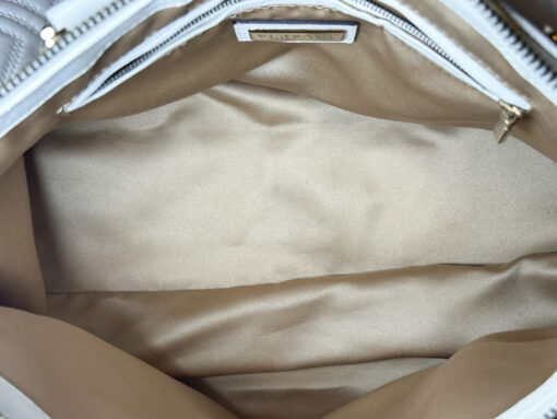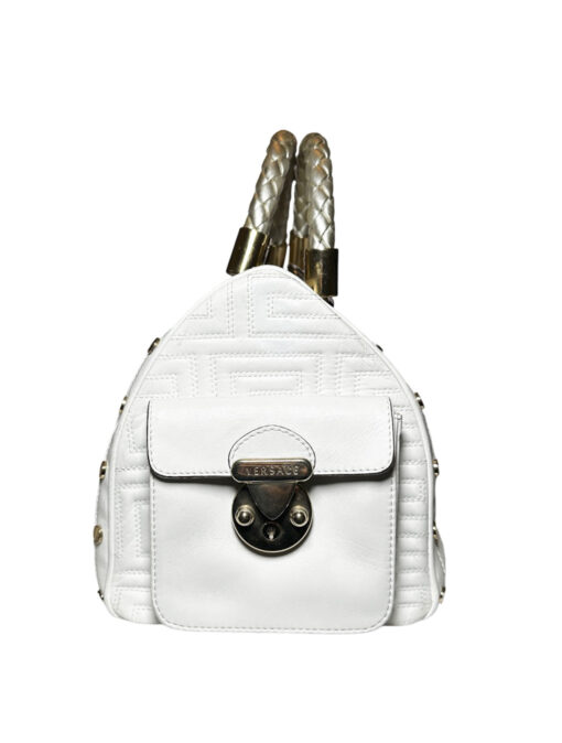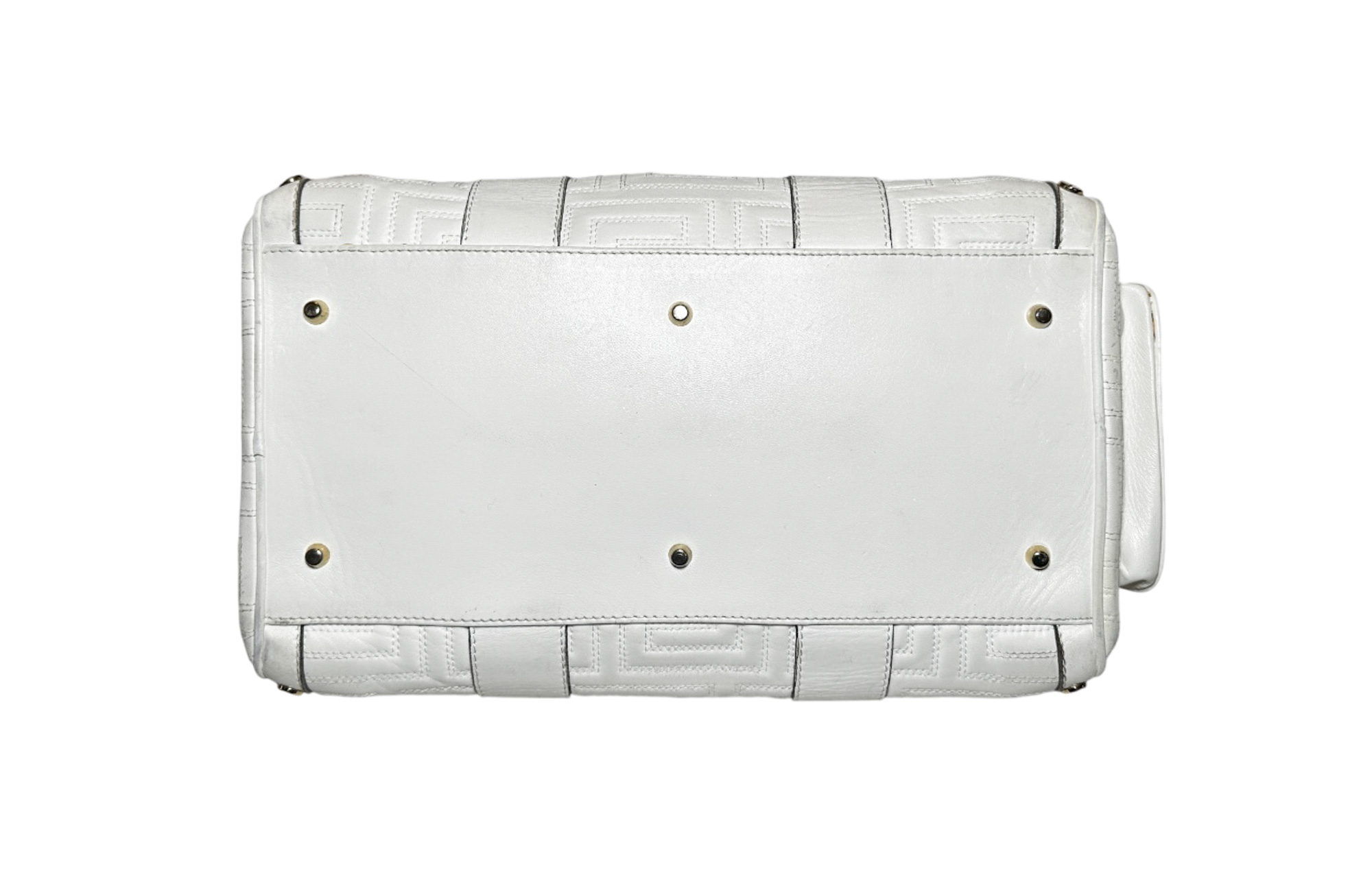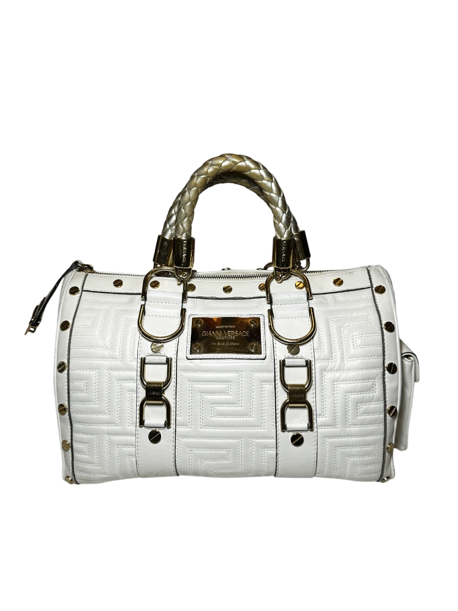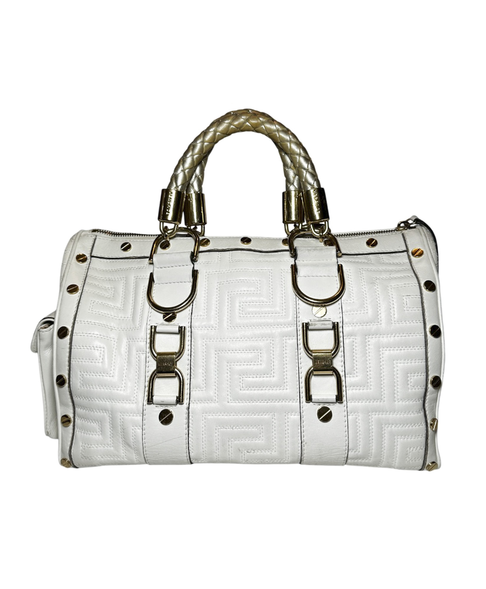 Versace Madonna White Quilted Leather Logo Plate Satchel Boston Top Handle Bag