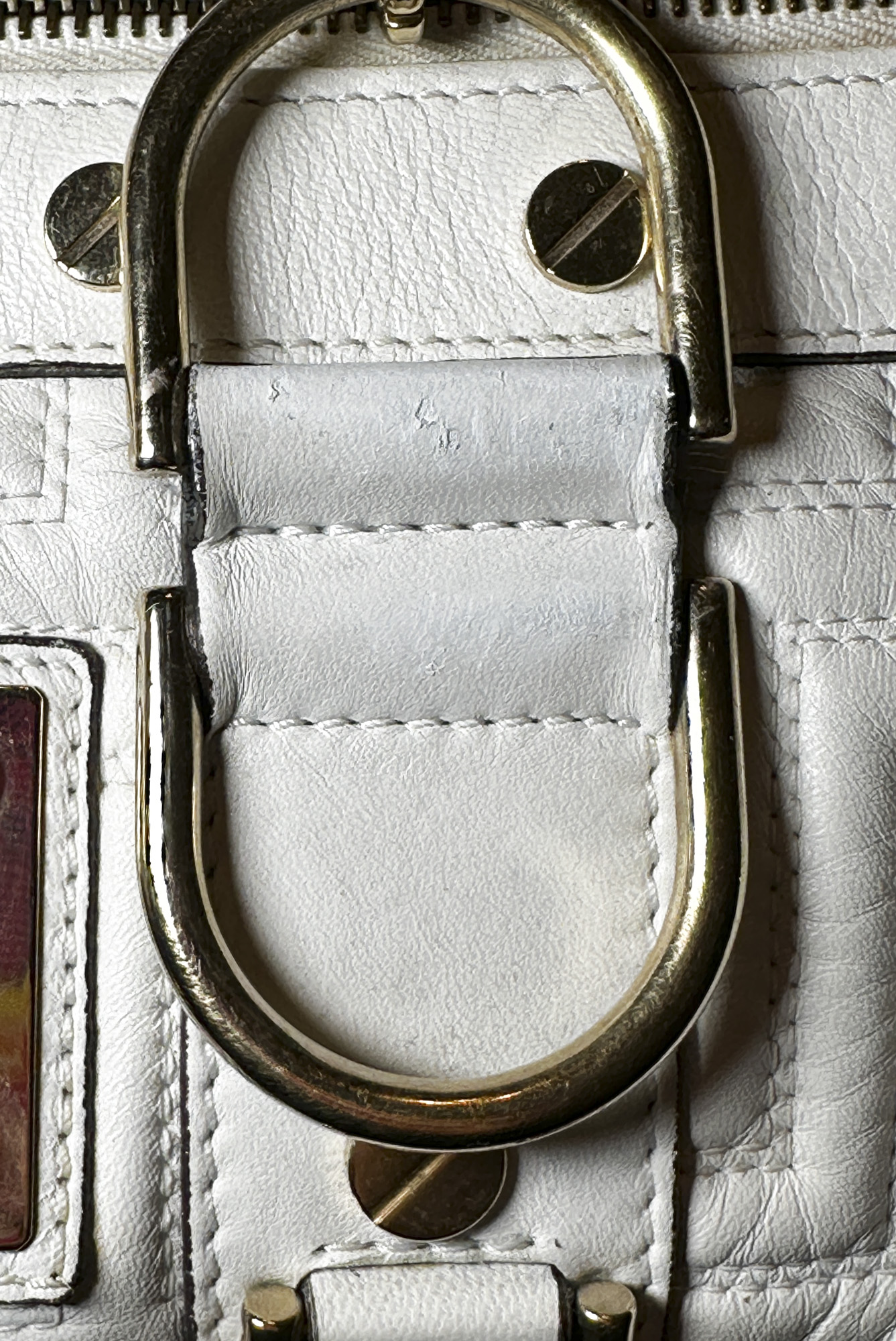 • Style: Madonna White Ivory Quilted Leather Logo Plate Satchel Boston Top Handle Bag