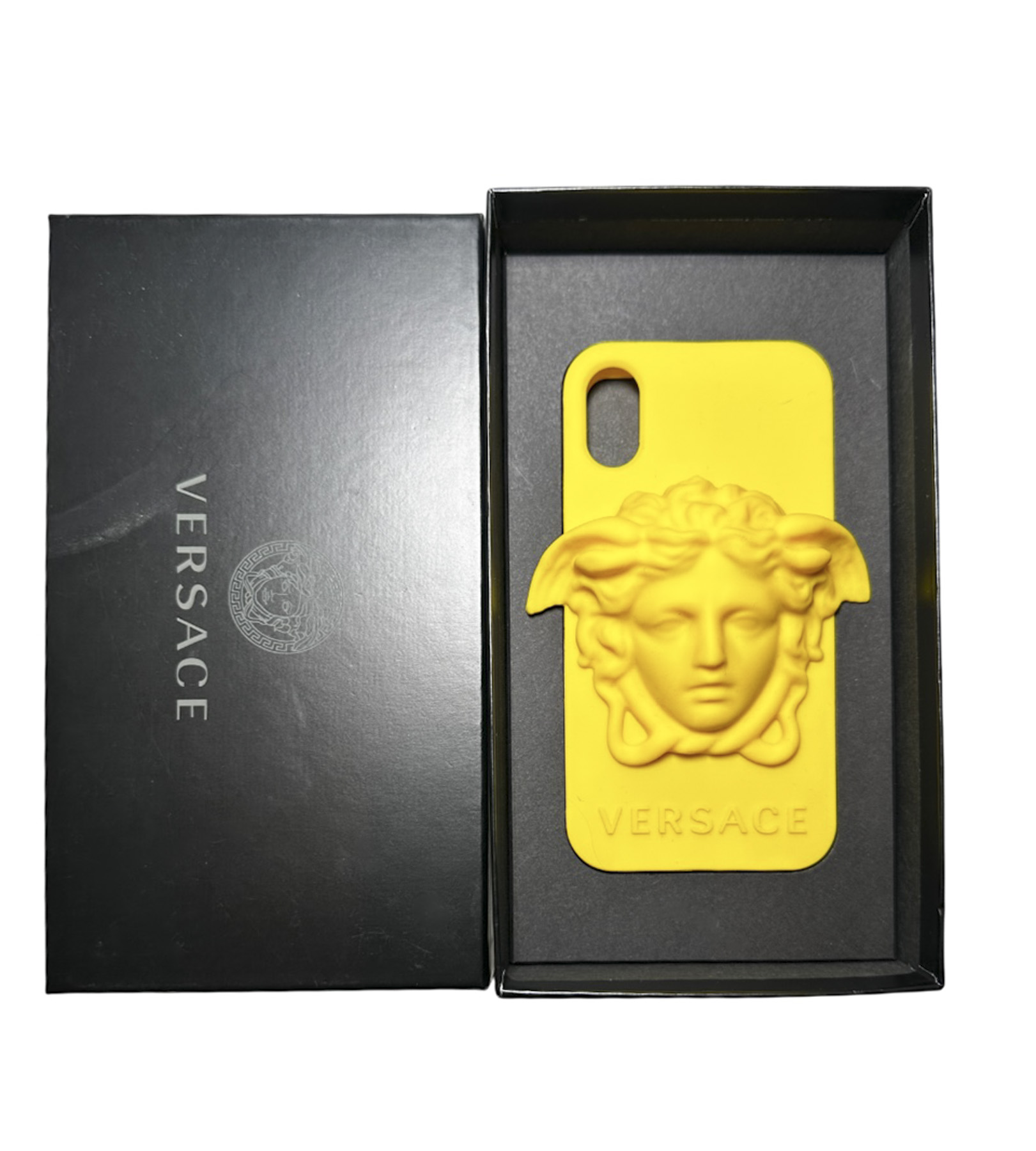 VERSACE NIB Medusa Yellow Silicone iPhone X Bumper Phone Shell Case Authentic