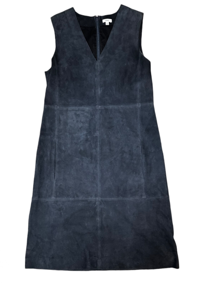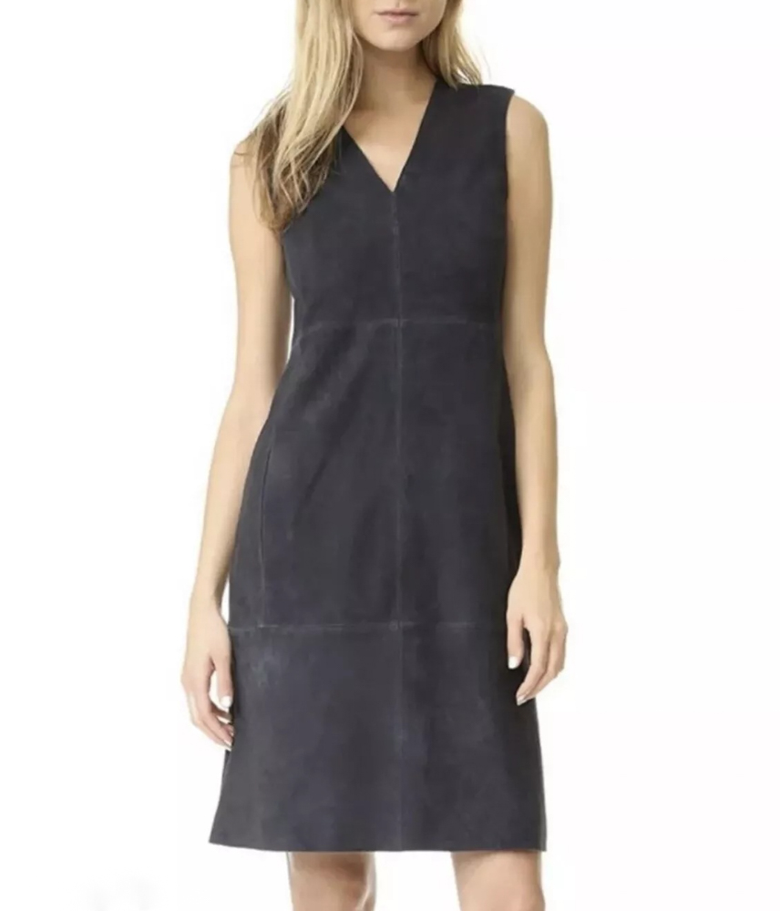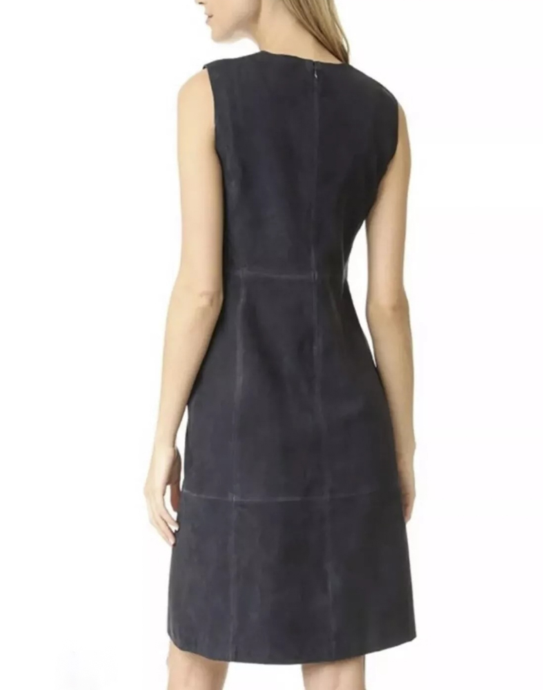 - Style: Blue Goat Suede Leather Sleeveless V-Neck Shift Dress