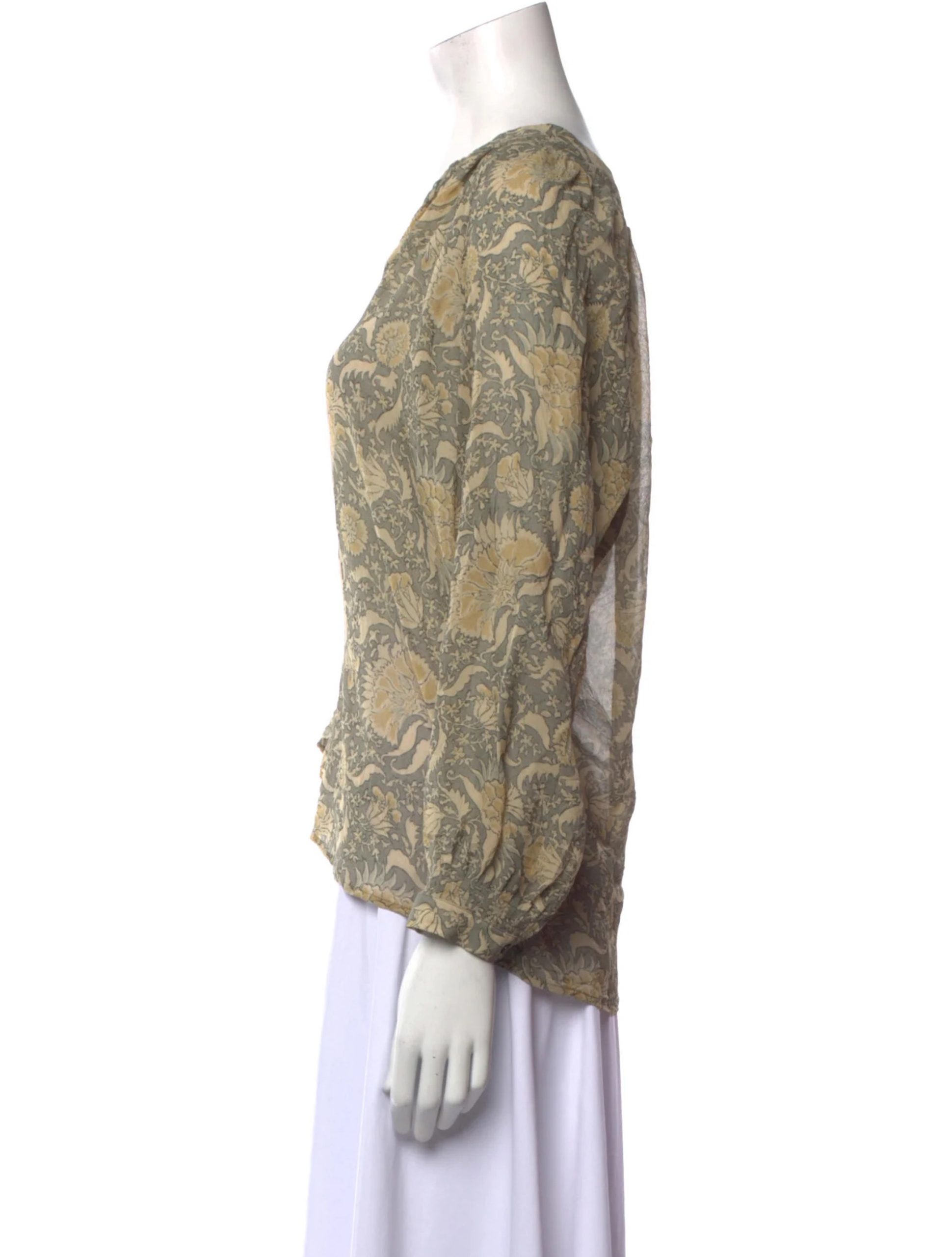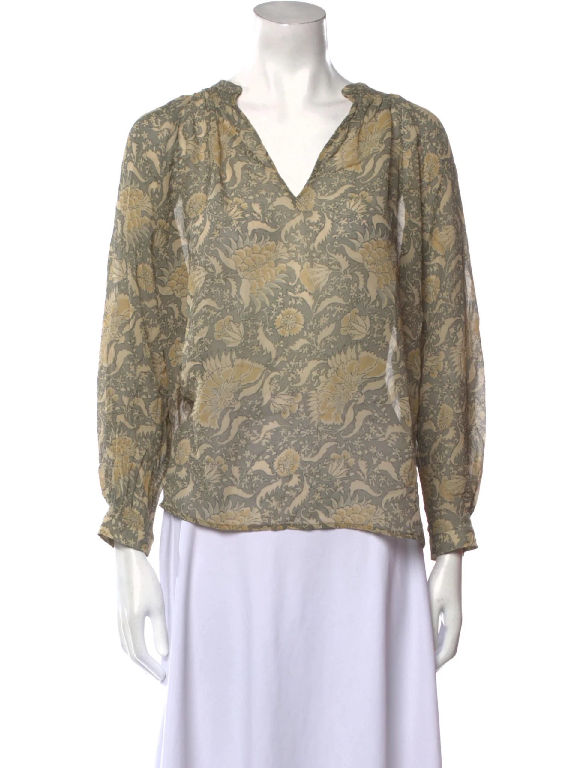 - Style: PAISLEY PRINTED SILK V-NECK TOP BLOUSE