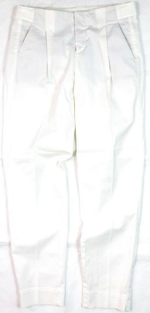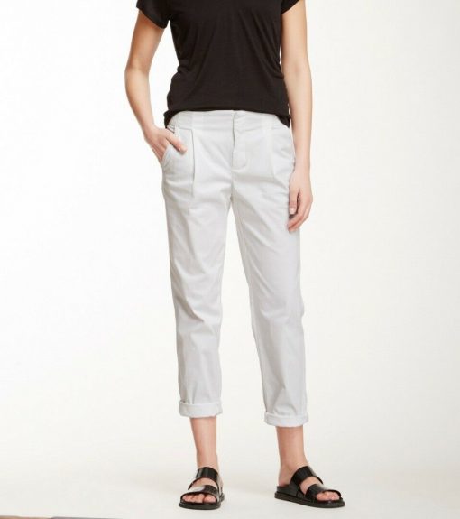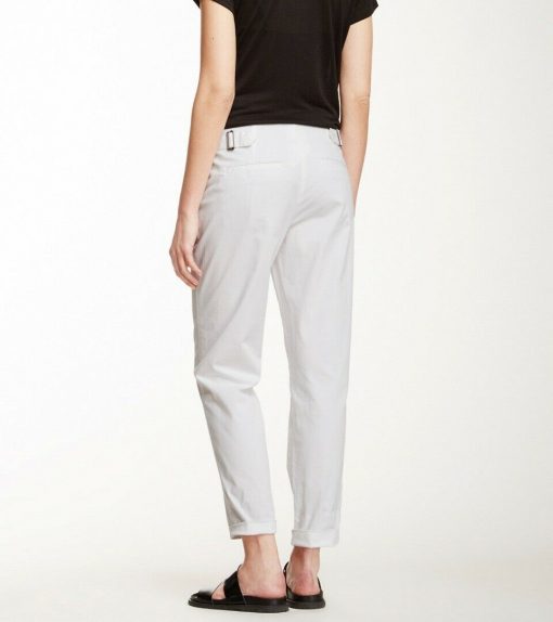 - Style: WHITE STRETCH COTTON SIDE BUCKLE ANKLE CROPPED TROUSERS