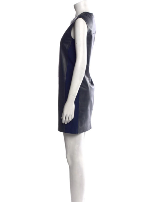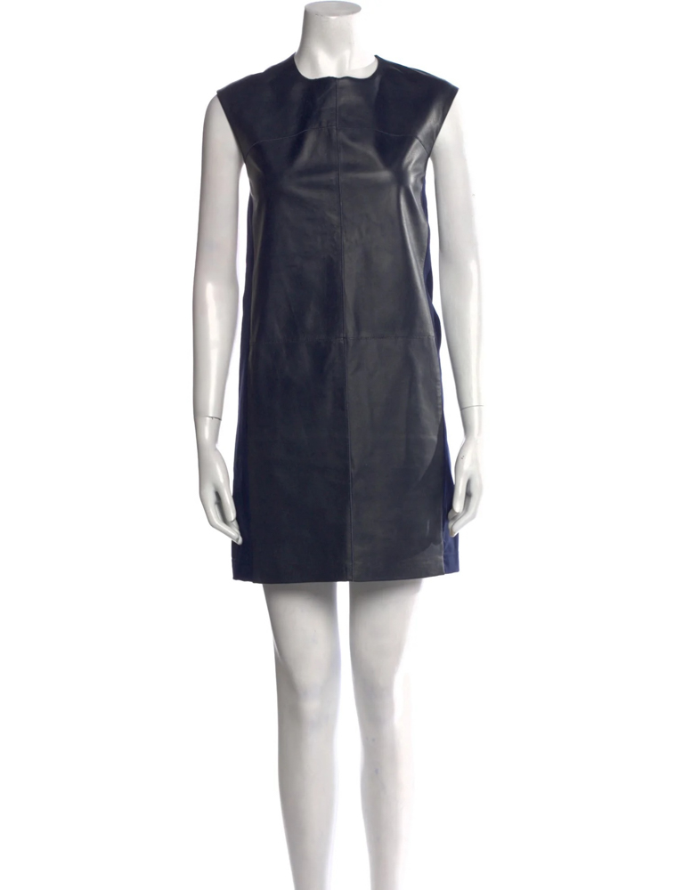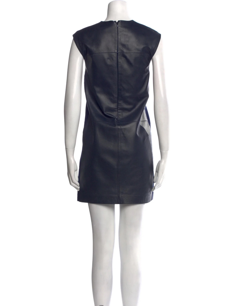 - Style:Lambskin Leather Shift Mini Dress Blue Sleeveless
