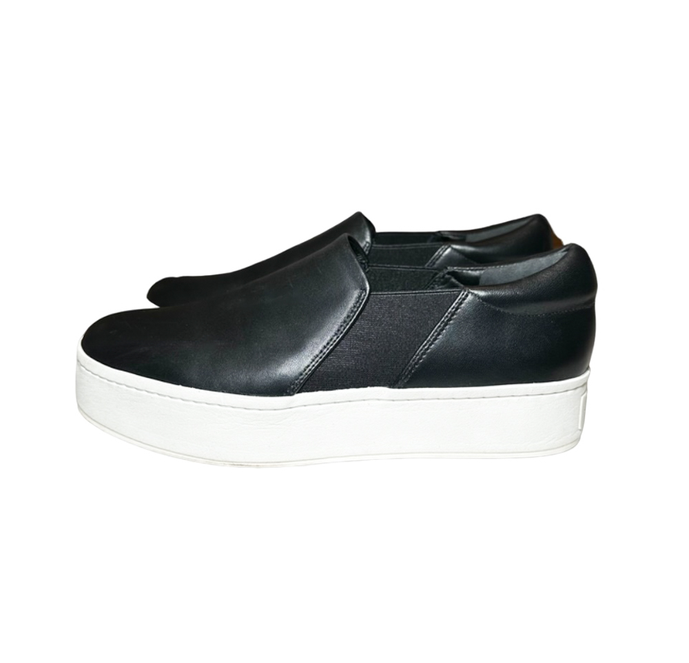 Vince Women’s Warren Black Leather Slip On Platform Sneakers Size 38.5/8