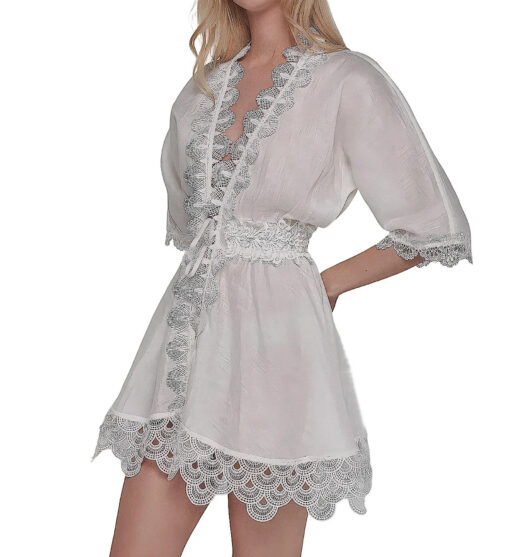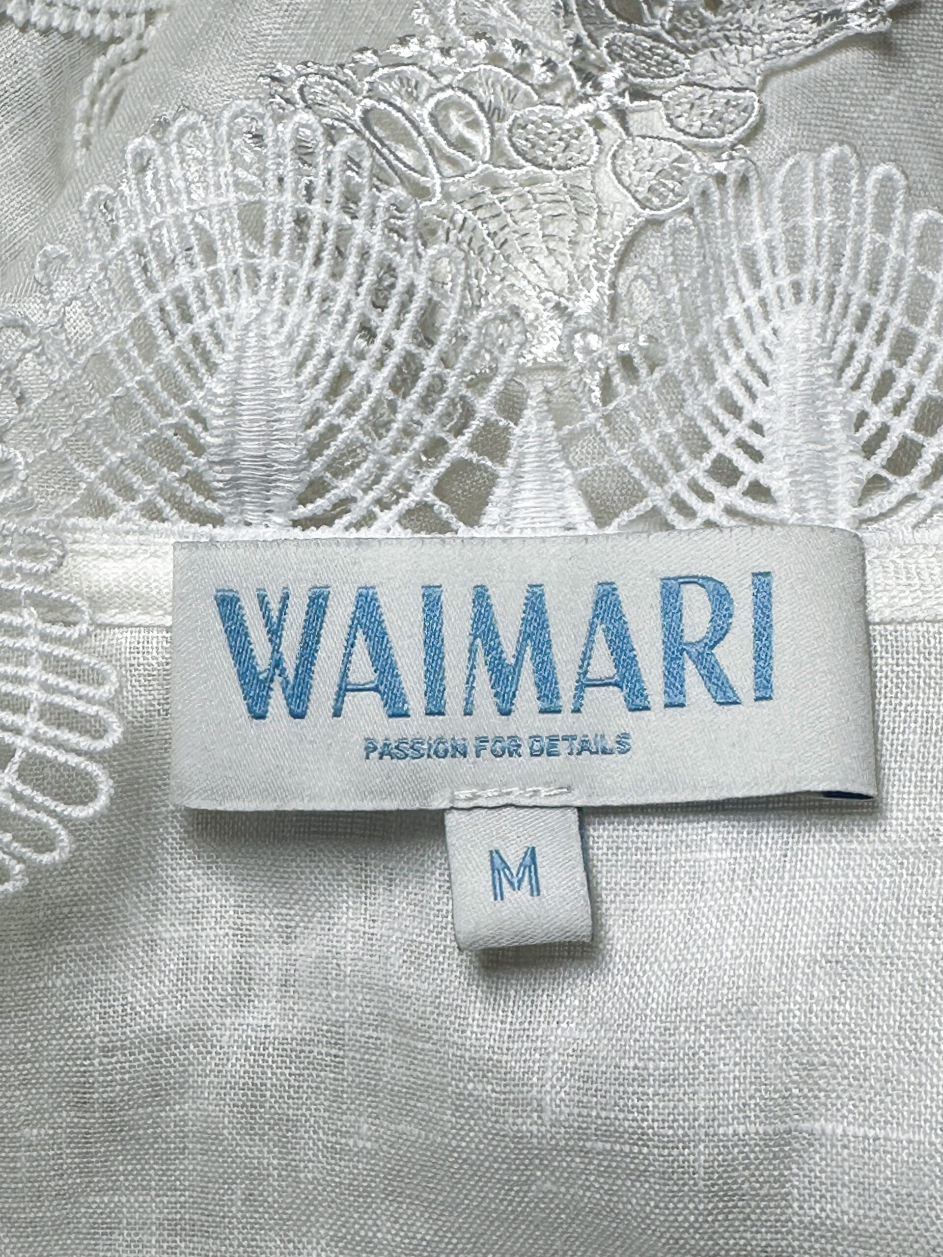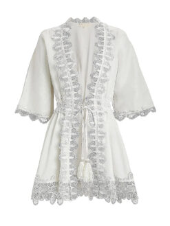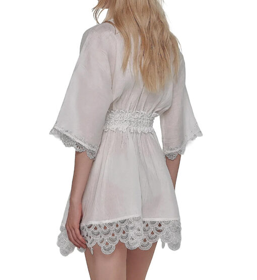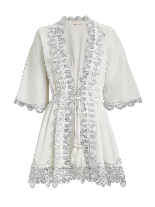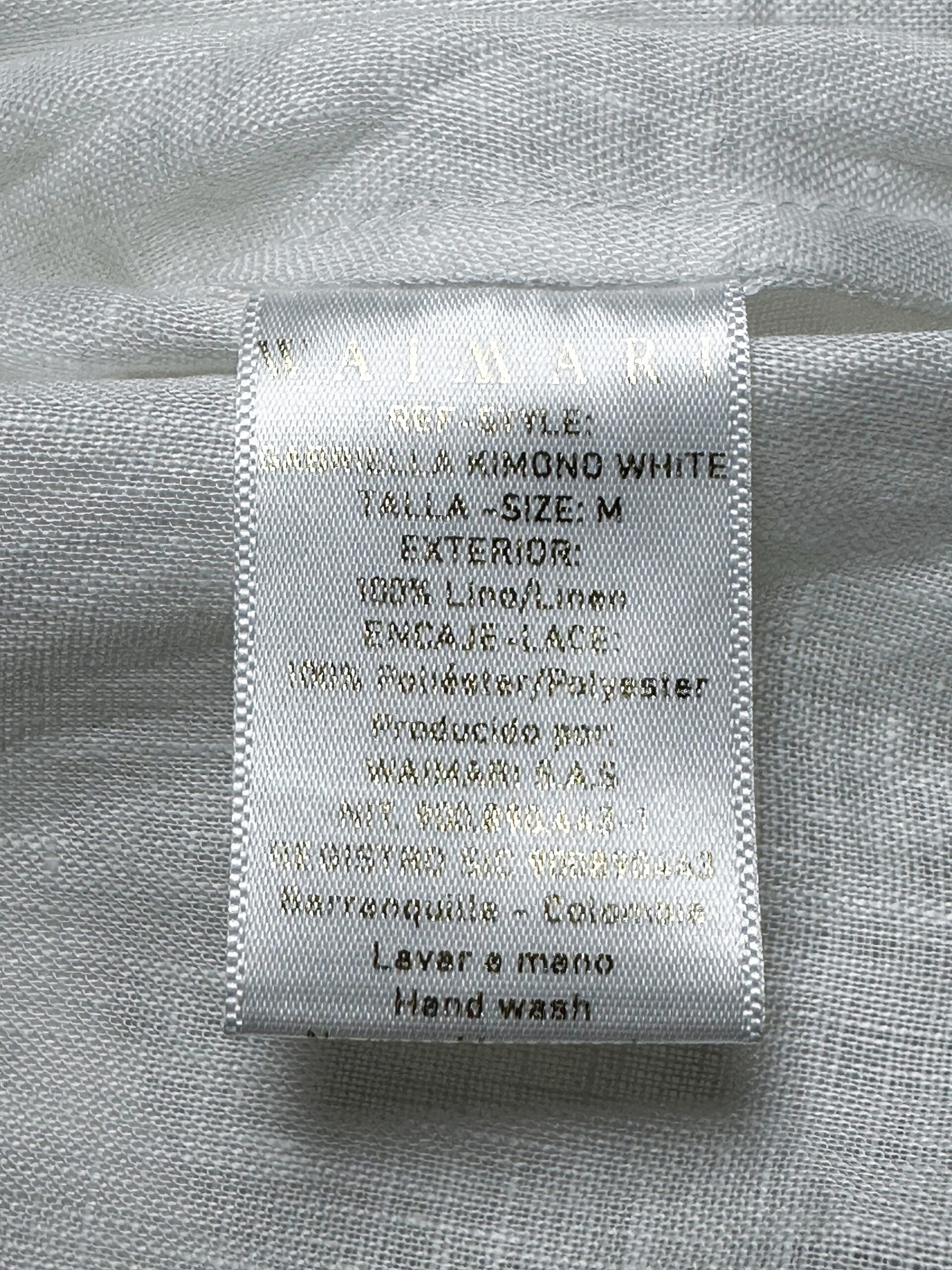 Waimari Gabriella White Linen Lace Kimono Tiered Mini Dress Medium NEW