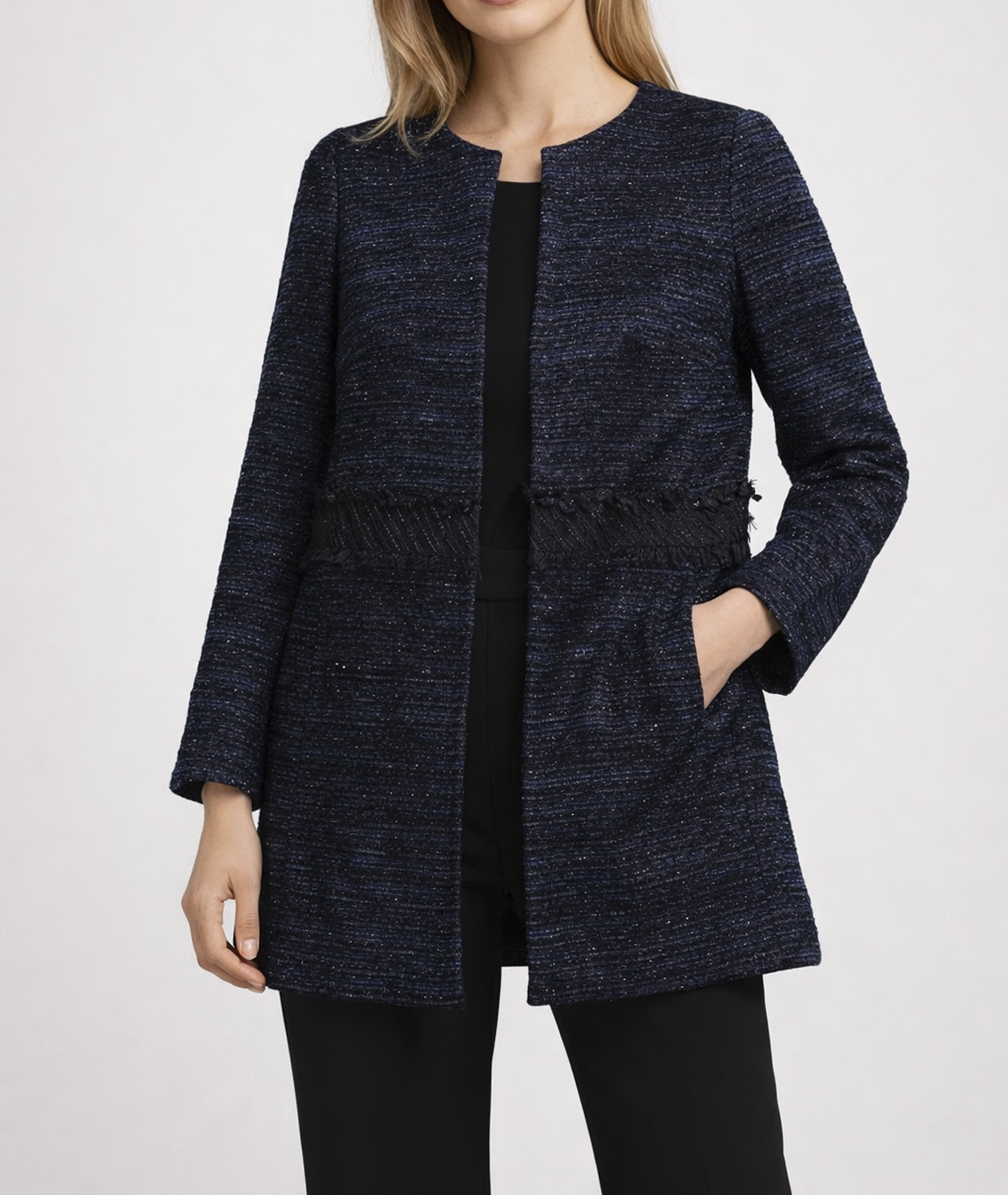 WEILL Metallic Tweed Lesage Collarless Long Coat Size 44/12