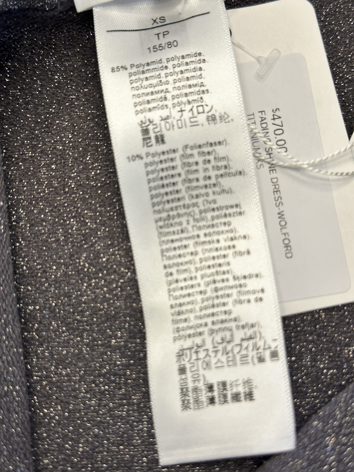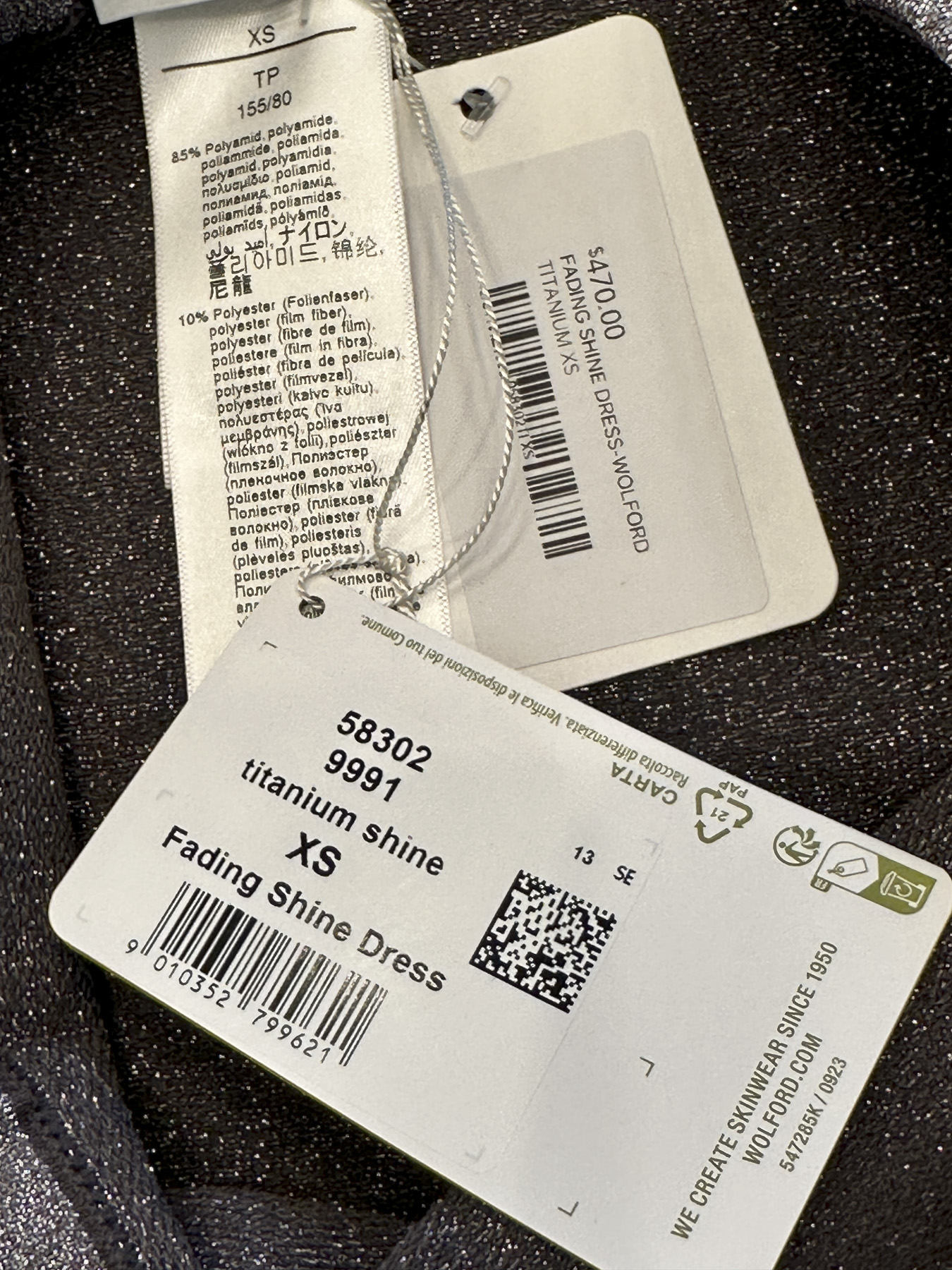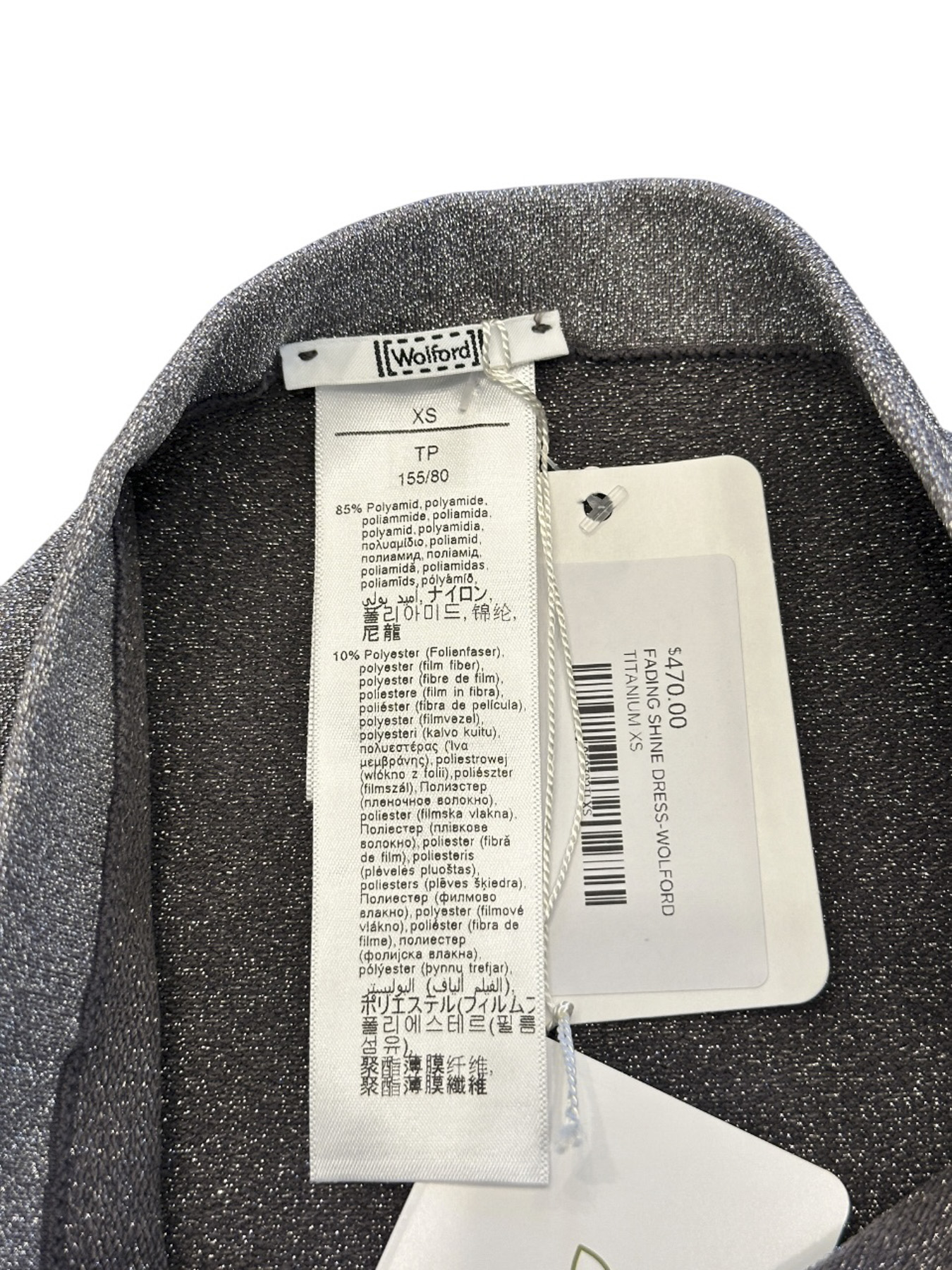 Wolford NWT Fading Shine Titanium Silver Strapless Bodycon Maxi Dress XS $470