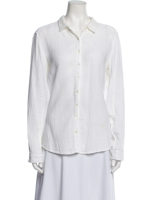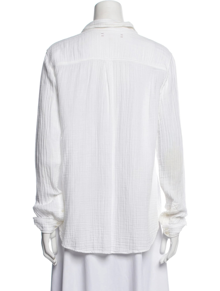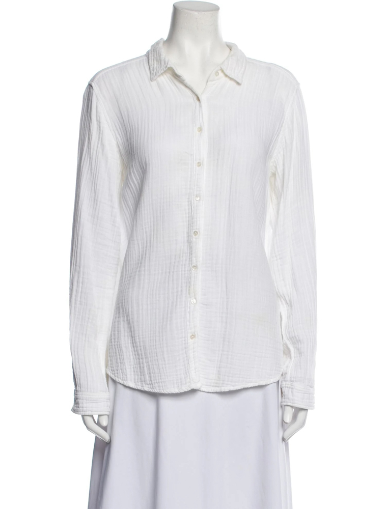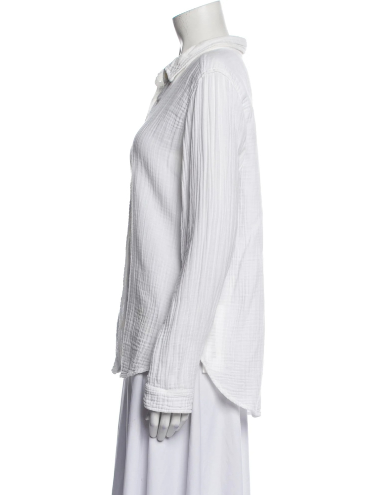 - Style: White Cotton Gauze Long Sleeve Button Up Shirt Top Blouse