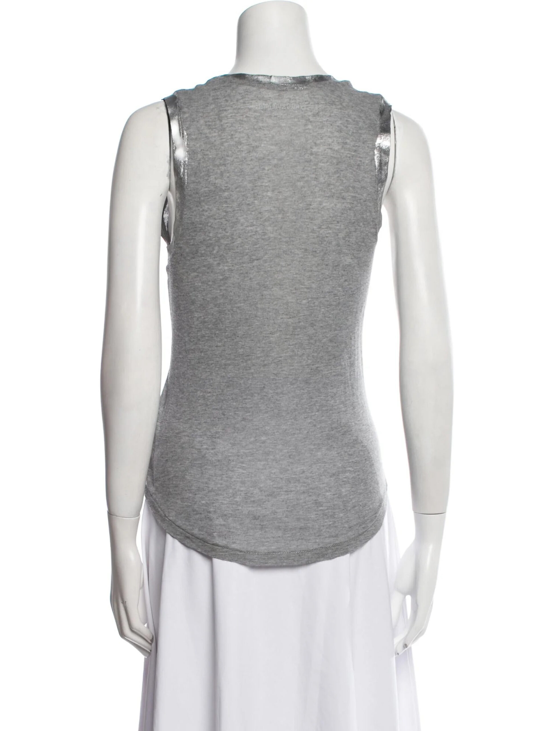 - Style: Tam Gray Scoop Neck Silver Foil Tank Top Blouse
