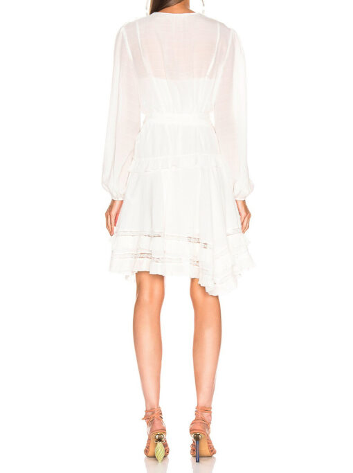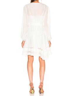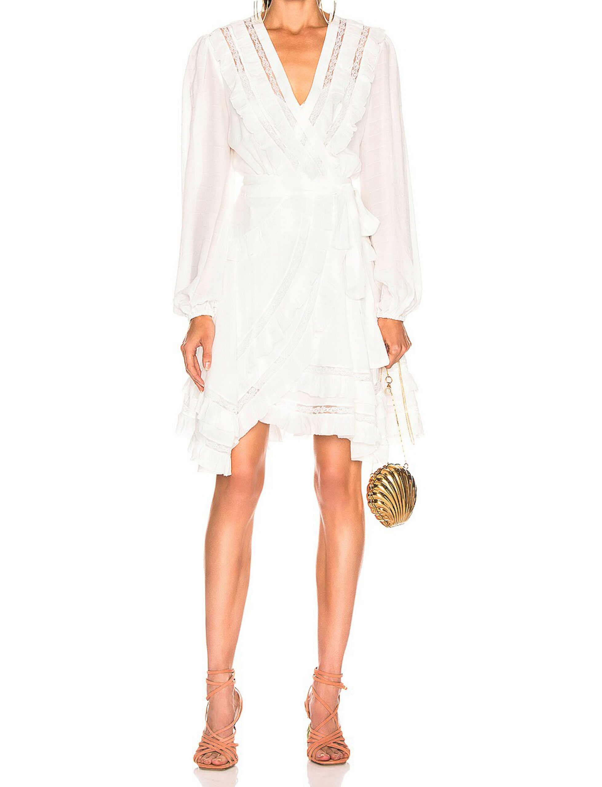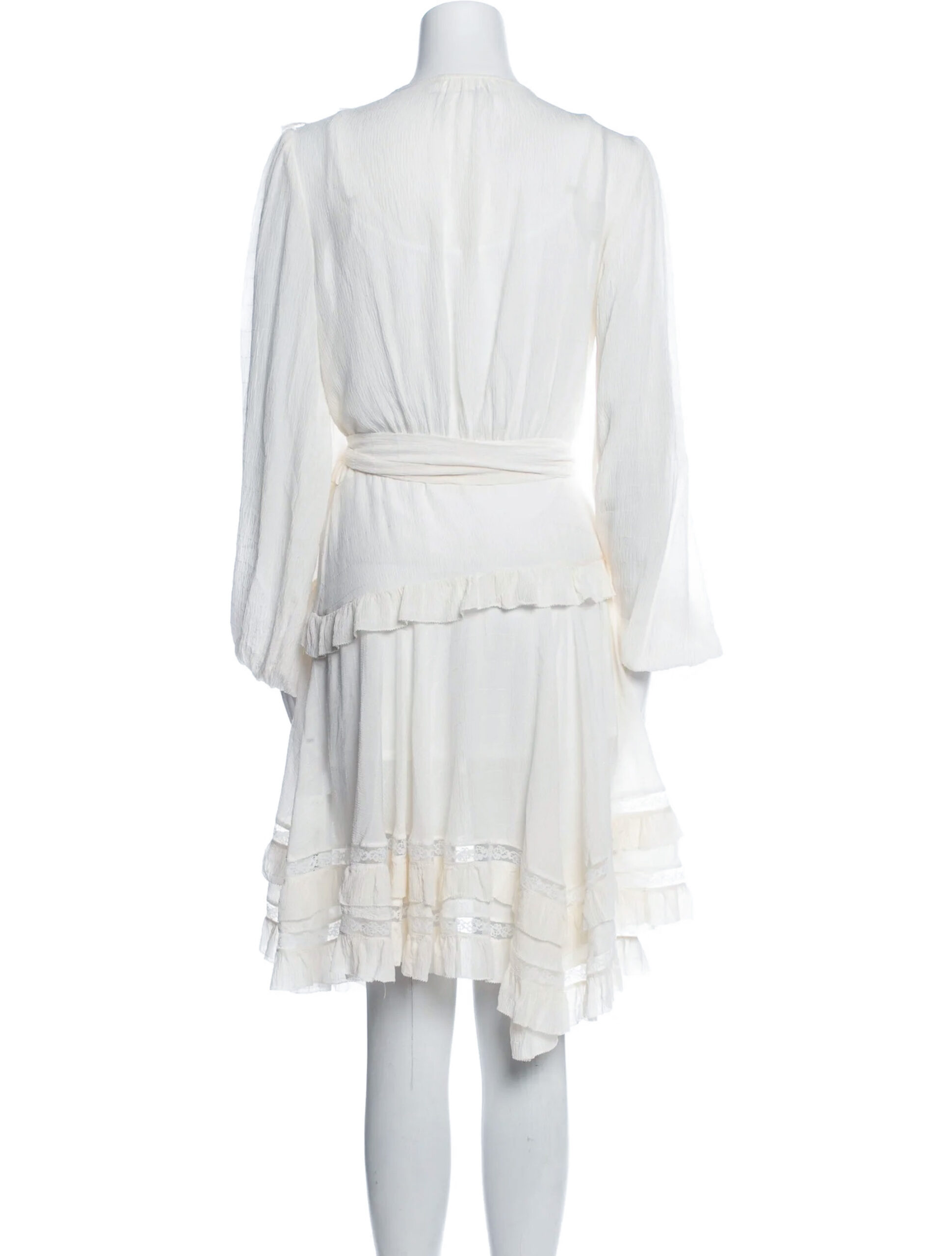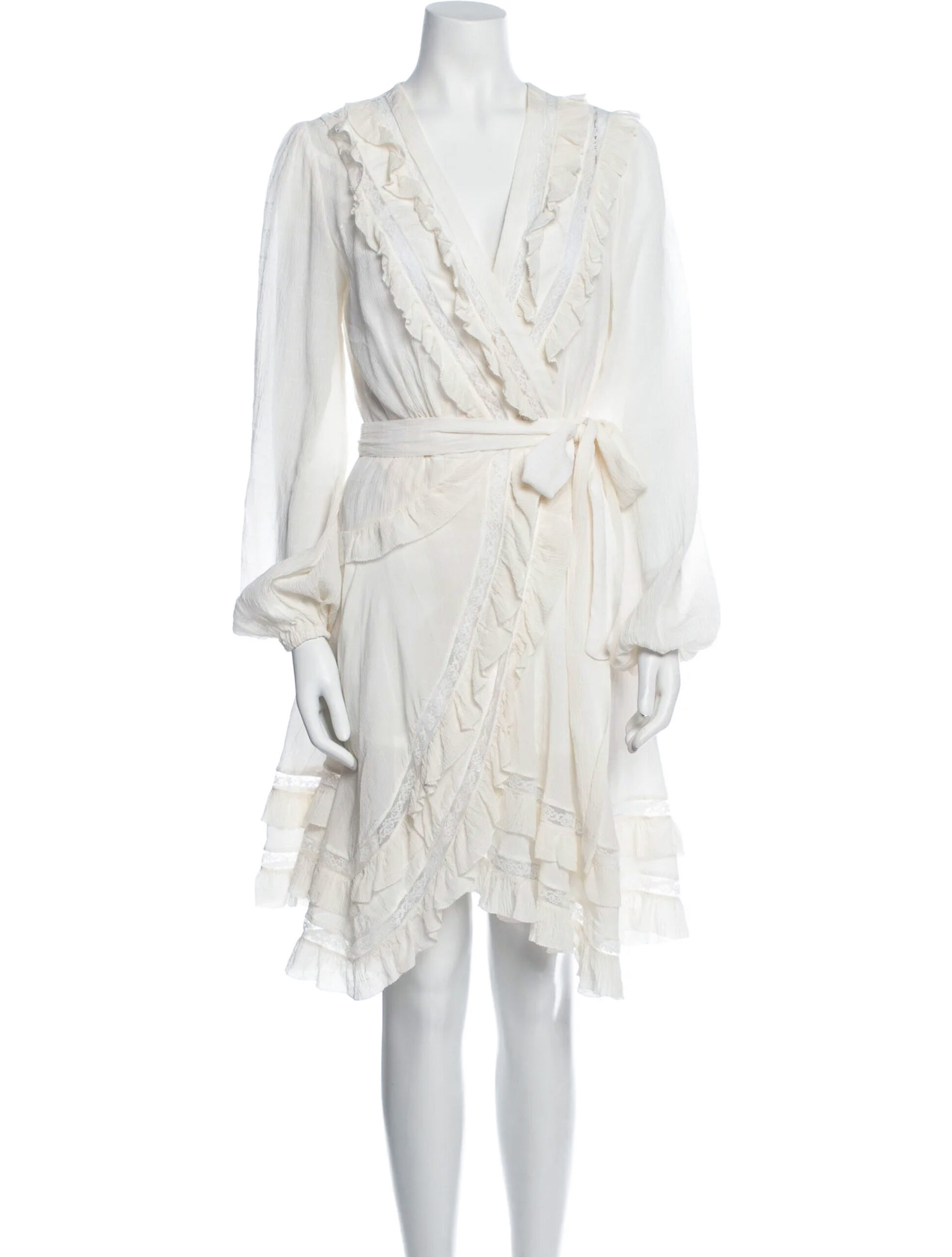 Zimmermann Moncur Silk Lace V-Neck Long Sleeve Frill Wrap Dress Size 2/Medium