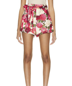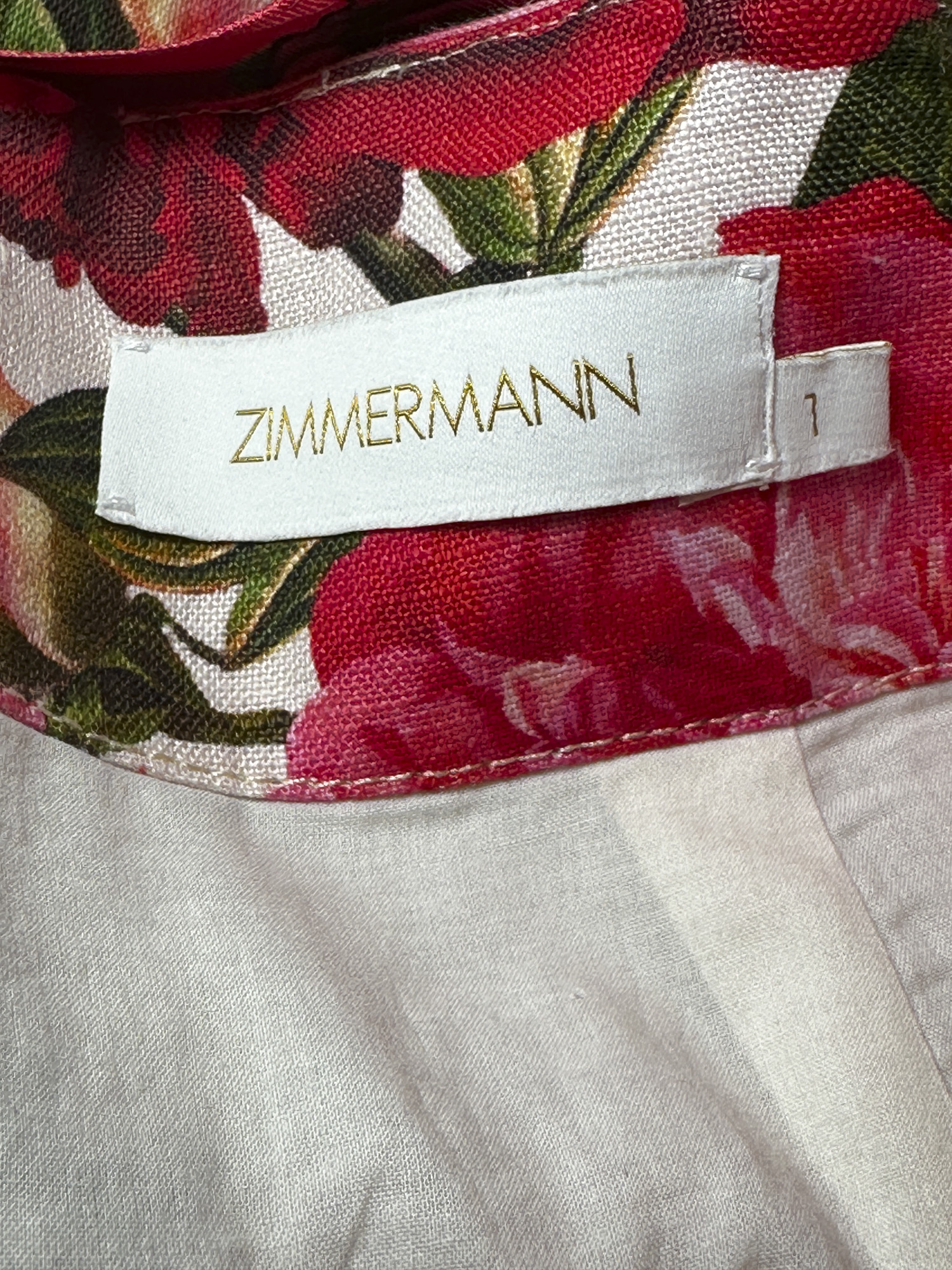 Zimmermann Wonderland High Rise Peonies Floral Linen Shorts Size 1