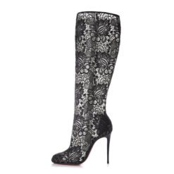 Christian Louboutin NIB Tennissina 100 Black Lace Knee High Tall Heels Boots 40