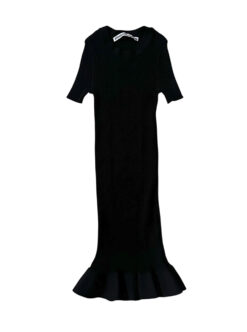 Alexander Wang Runway Black Ribbed High Neck Flare Hem Mini Dress Small