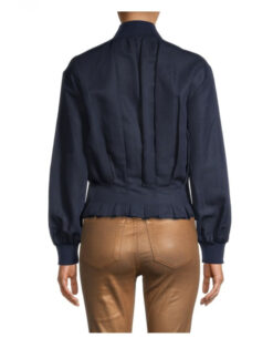 Frame Women’s Shawl Collar Pintuck Full Zip Linen Jacket XXS Navy